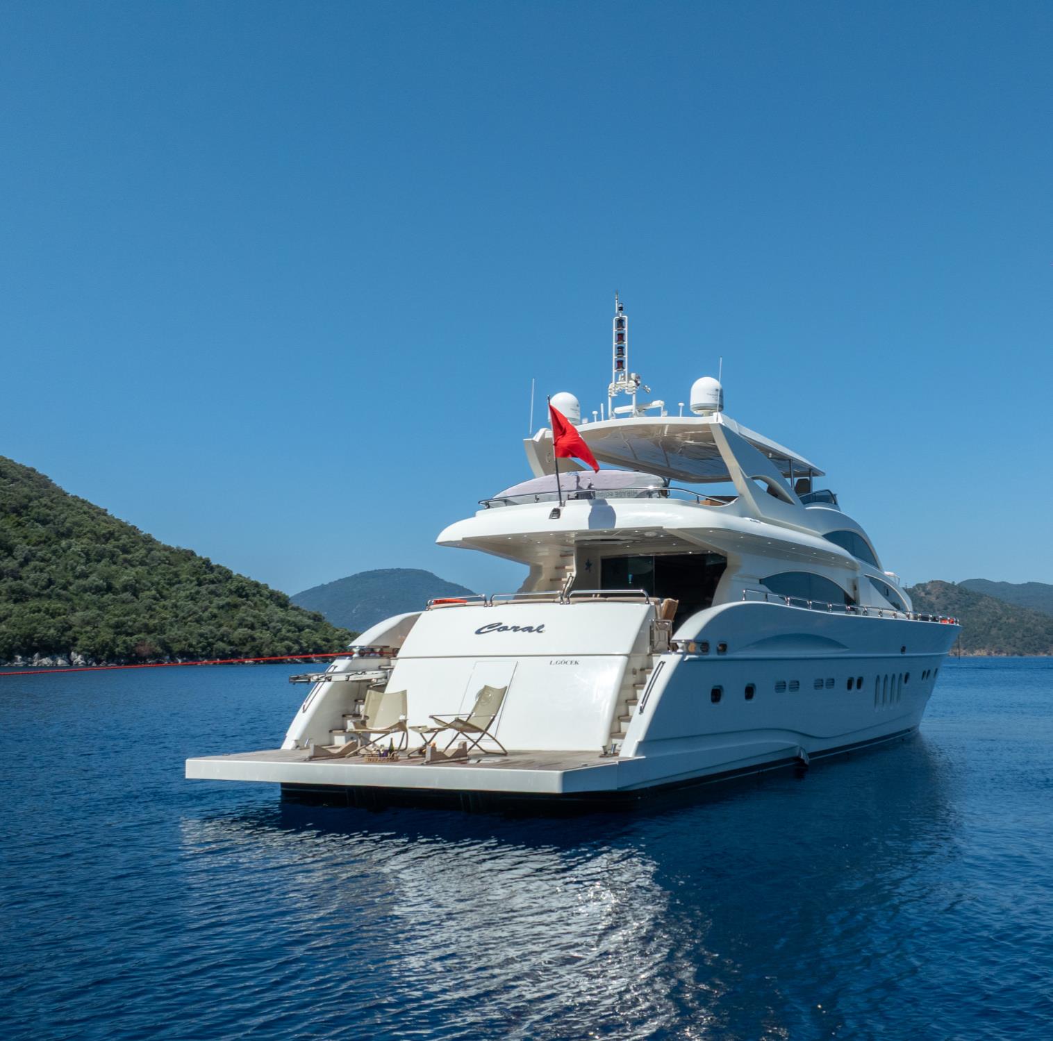 M/Y CORAL, 34 metre uzunluğu ve 7.50 metre genişliğiyle Akdeniz’in en seçkin motoryatlarından biridir. Modern çizgileri, geniş yaşam alanları ve yüksek performansı sayesinde hem konfor hem de hız arayan konuklar için mükemmel bir charter deneyimi sunar.