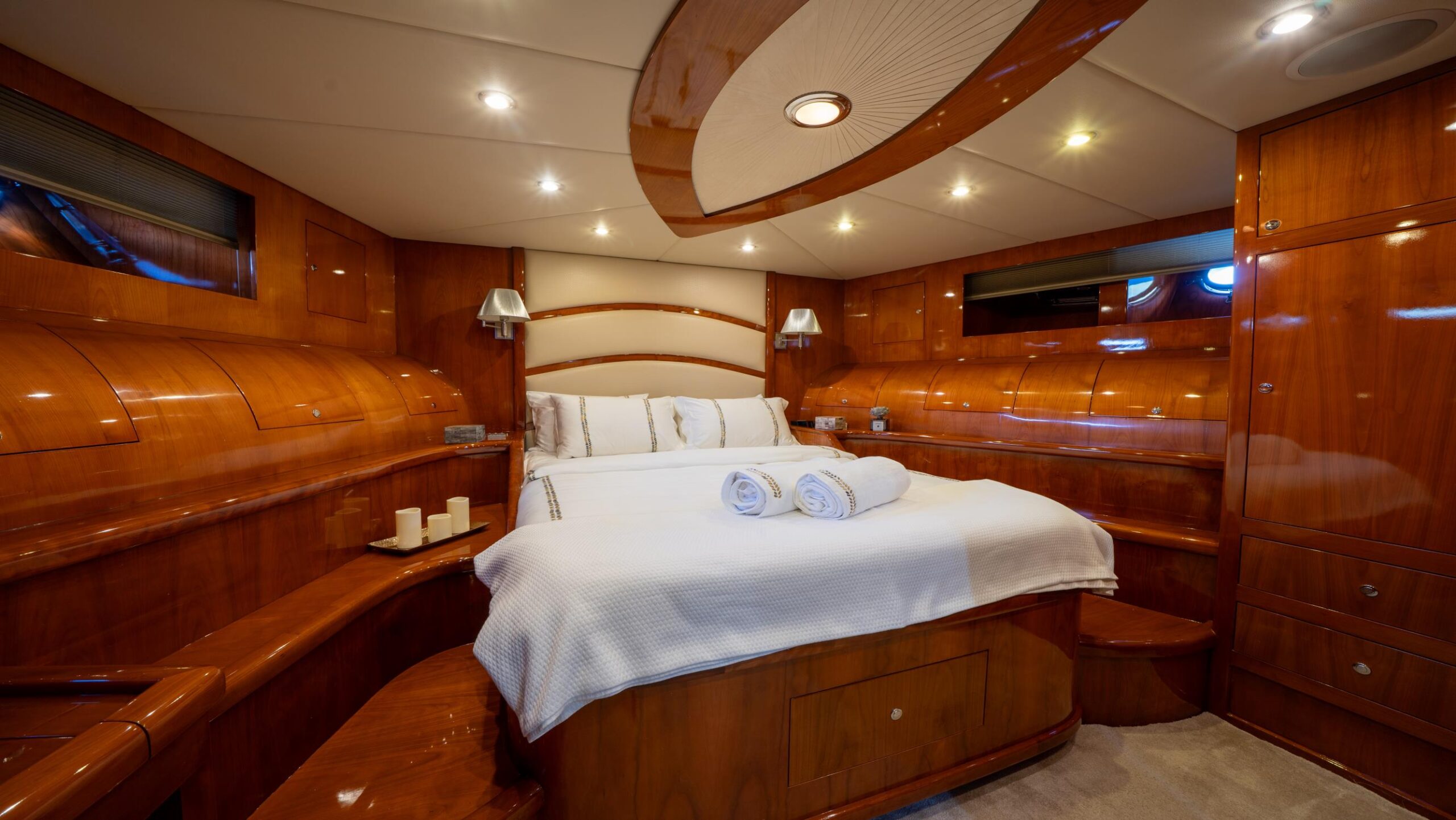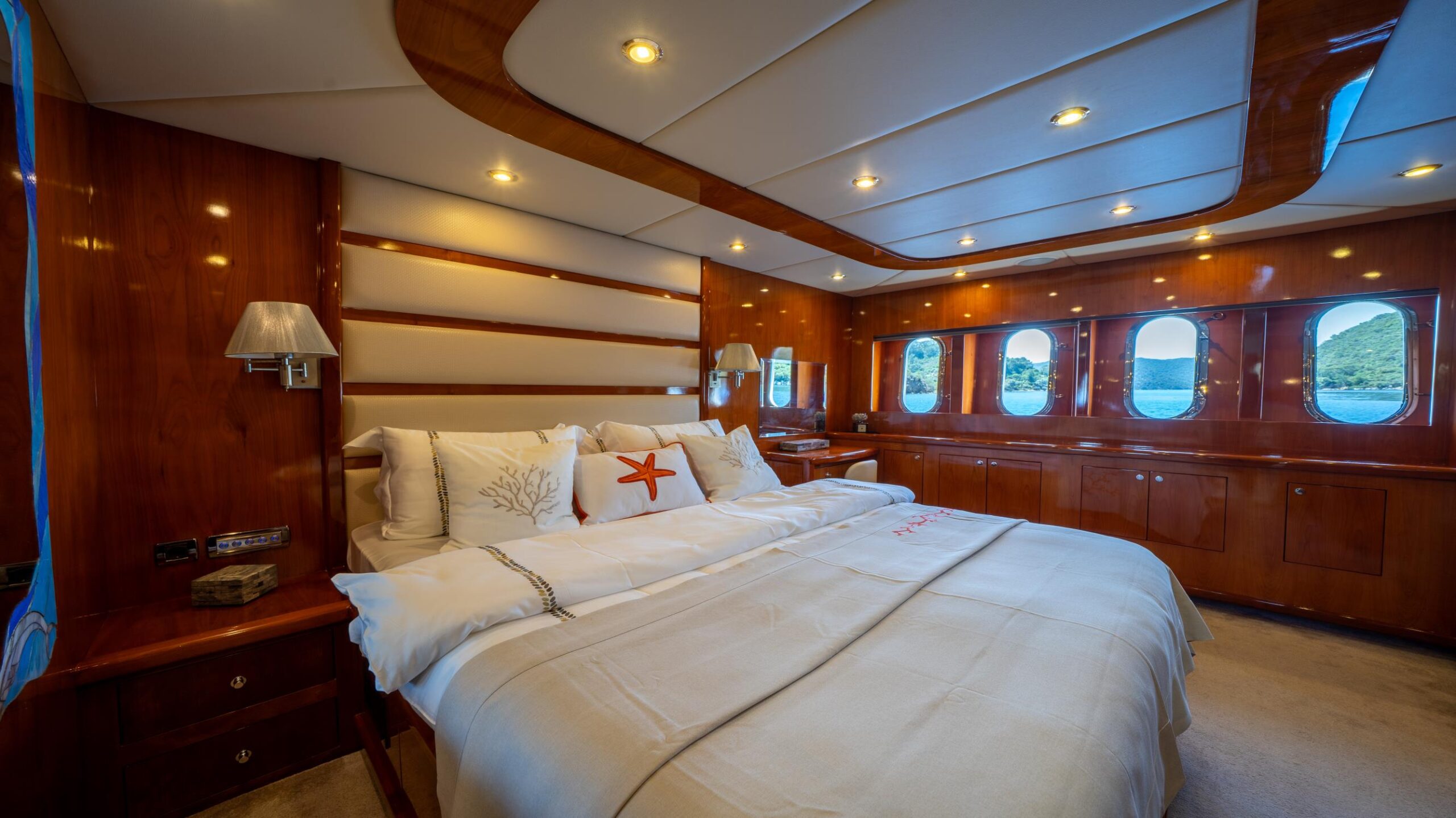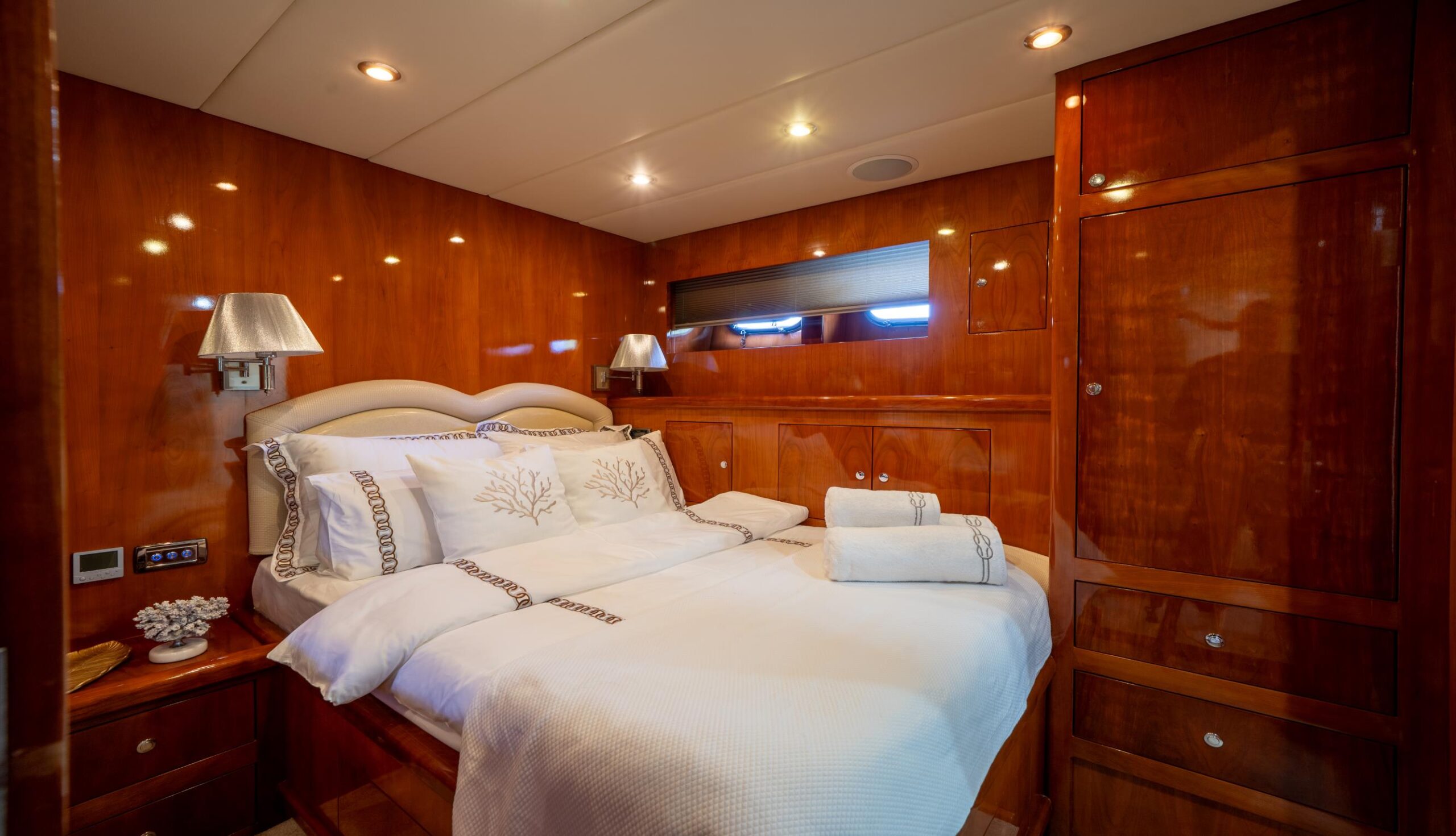 Her kabinde özel banyo, klima, geniş depolama alanları ve yüksek kaliteli malzemeler kullanılmıştır.