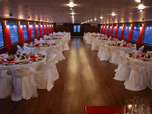 SLM-S teknemiz ile sizde eşsiz organizasyonlar tertip edebilir, oldukça değişik mekan seçiminiz ile unutulmayacak bir davet hazırlayabilirsiniz. Okul, iş, kına, nişan ve düğün gibi organizasyonlarınıza ev sahipliği yapabilecek bu teknemiz 480 kişiliktir. İsteğinize bağlı olarak yemekli seçeneği de bulunan bu geniş teknemizde toplamda 350 kişilik yuvarlak masa hizmetimiz bulunmaktadır. Sizlerin ihtiyaçlarına yönelik olarak dizayn edilen ve içerisinde lavabosundan, çocuk bakım odasına kadar birçok hizmet sunulan bu teknemizi kiralamak için sadece bizi aramanız yeterlidir.