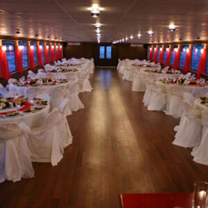 SLM-K teknemiz ile sizde özel günlerinizi burada tertip edebilir, davet ve organizasyon işlemlerinizi teknemizde gerçekleştirebilirsiniz. Yüksek kapasiteye sahip bu teknemiz ile kına, nişan, mezuniyet ve parti tarzındaki organizasyonlarınızı burada gerçekleştirebilirsiniz. Toplamda 210 kişi kapasitesi bulunan teknemizde, 160 kişilik yuvarlak masa hizmetimiz bulunmaktadır. Deneyimli personeller ile denize açılabileceğiniz bu teknede ayrıca 4 adet lavabo ve bakım odaları da bulunmaktadır. Dilediğiniz saat veya gün için bu teknemizi kiralayabilir, bizi arayarak bilgi alabilirsiniz.