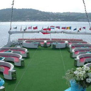 Yüksek yolcu kapasiteli ve lüks Tekne İNC ile sizlerde özel organizasyonlar tertip edebilirsiniz. 42 metre uzunluğa ve 9 metre genişliğe sahip bu lüks teknemizde, kına, nişan, düğün, gezi ve parti gibi kalabalık organizasyonlarını gerçekleştirebilir, farklı konsept imkânına erişebilirsiniz. Denizin mavi sularında daha prestijli bir sunum imkânına kavuşabileceğiniz bu organizasyonlarınız için yemek servisi de bulunan teknemizde, yuvarlak masalar için 204, dikdörtgen masalar için 300 kişilik kapasite bulunmaktadır. Sizde bu tekne hakkında bizleri arayarak bilgi sahibi olabilirsiniz.